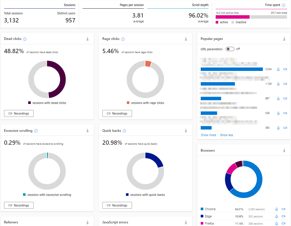 - Which pages are the source for the most rage clicks (where someone repeatedly spams a button or field)?