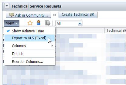 The first tab of my SR Dashboard spreadsheet is where I paste the raw data from MOS. You need to make sure the columns are in the right sequence (Problem Summary, Technical SR#, Contact, Severity, Status, Last Updated, Opened, then whatever else you need), then just Export to Excel: